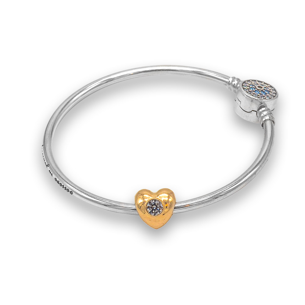Prívesok v tvare srdca zo 14-karátového zlata zdobený kryštálom v strede.