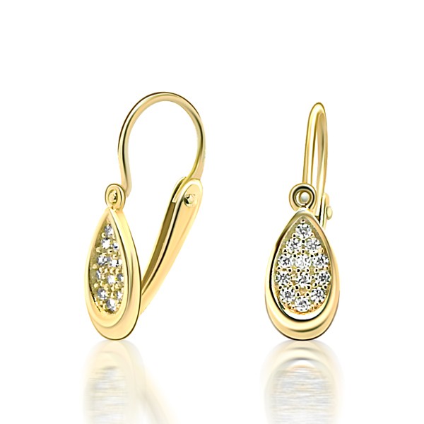 Náušnice zo 14k zlata v tvare kvapky, zdobené krištáľom