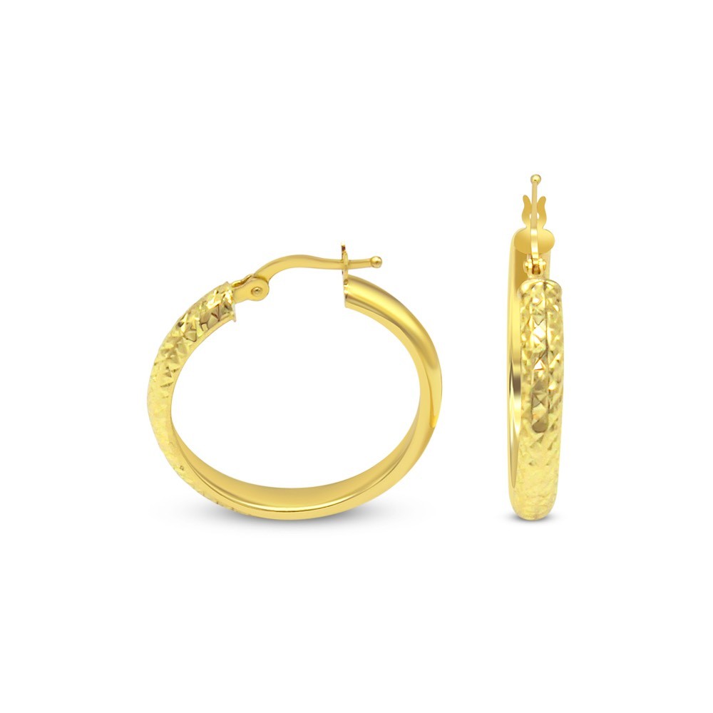 Kruhové náušnice vyrobené zo 14 karátového zlata, s gravírovaným vzorom.