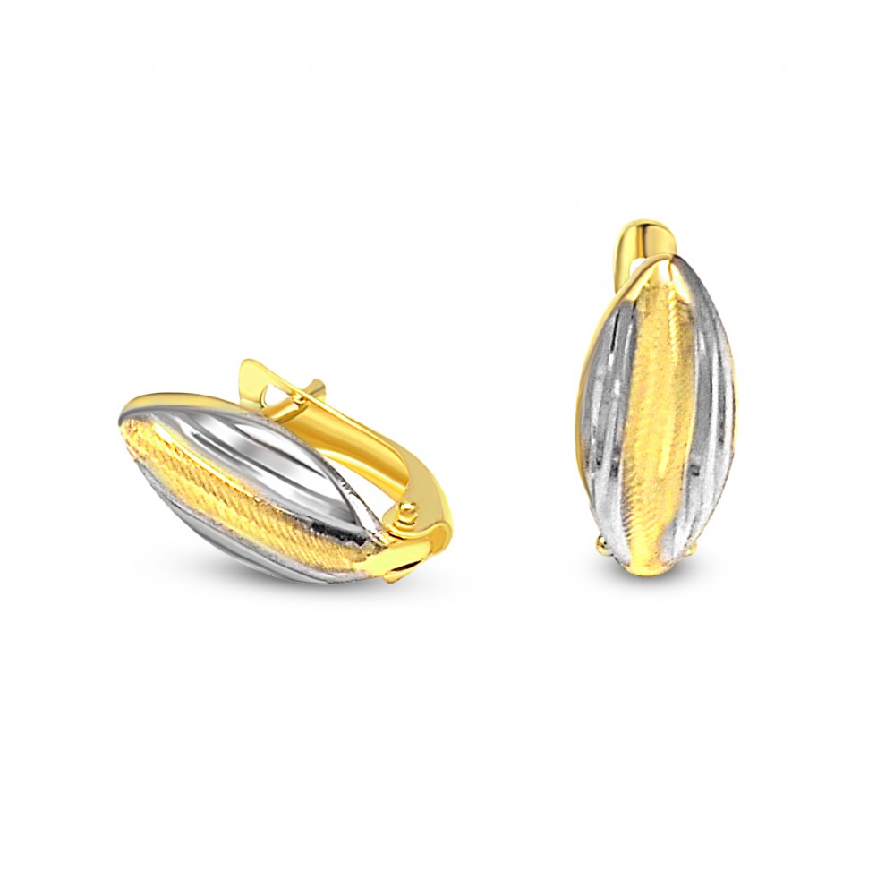 Náušnice zo 14k zlata, dvojfarebné, listové (s vodorovným prúžkom)