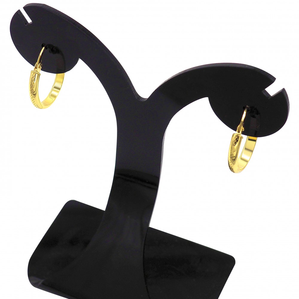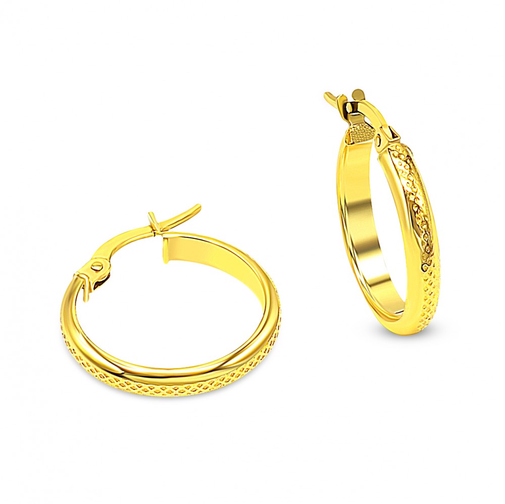 Náušnice zo 14 karátového zlata, obruč, so vzorom vyrytým do polovice obruče.