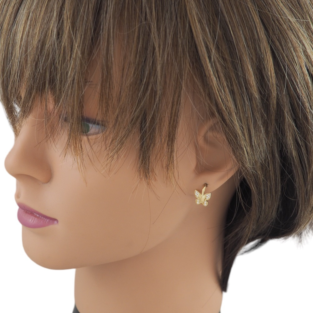 Náušnice zo 14 karátového zlata so vzorom motýľov, zdobené kryštálmi.