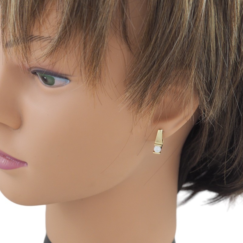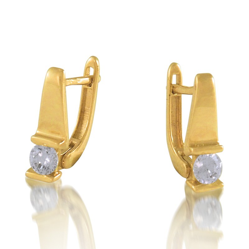 Trapézové náušnice vyrobené zo 14 karátového zlata s 1 krištáľovým zdobením.