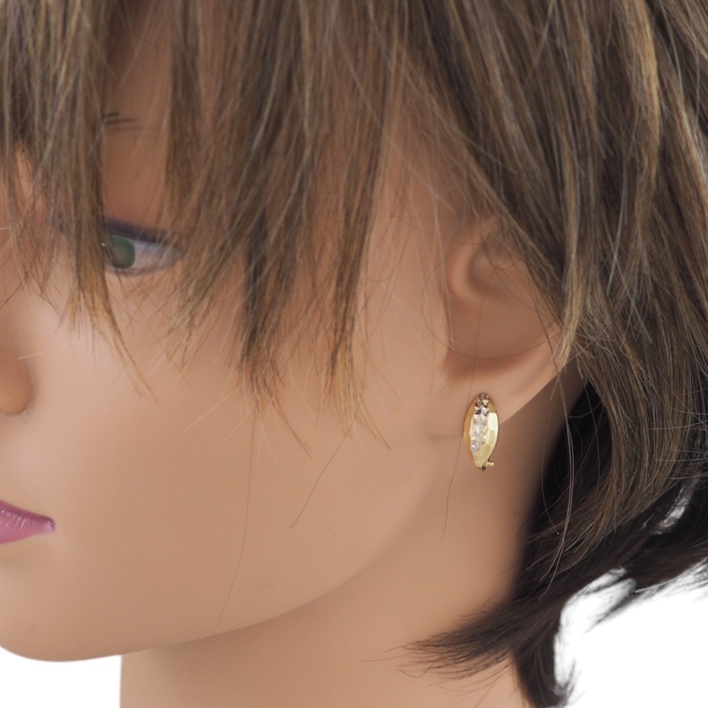Náušnice zo 14 karátového zlata v tvare lístka, gravírovaný vzor v stredovom páse, francúzske zapínanie
