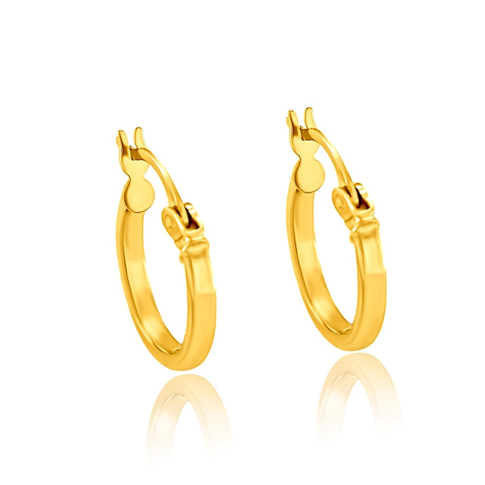 Klasické kruhové náušnice zo 14-karátového zlata z drobného splošteného materiálu.
