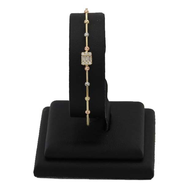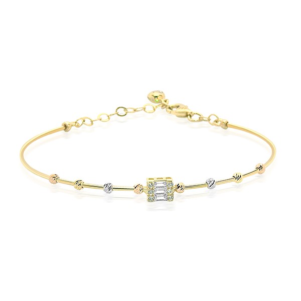 Módny, mladistvý náramok zo 14 karátového zlata zdobený guľôčkami a kryštálmi.