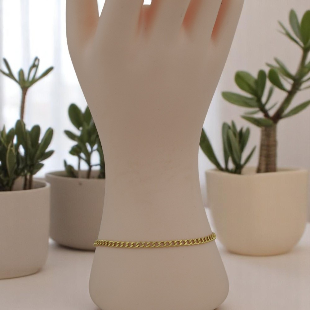 Klasický náramok zo 14 karátového zlata, vyrobený zo sploštenej panzer retiazky.