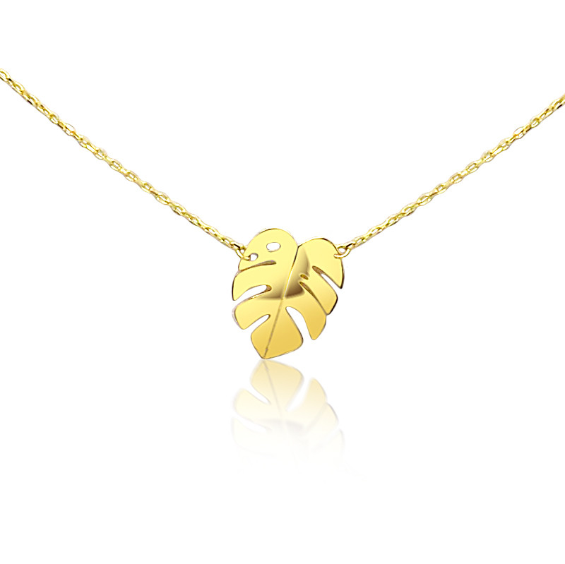 Náhrdelník zo 14 karátového zlata s príveskom s vyobrazením listu.