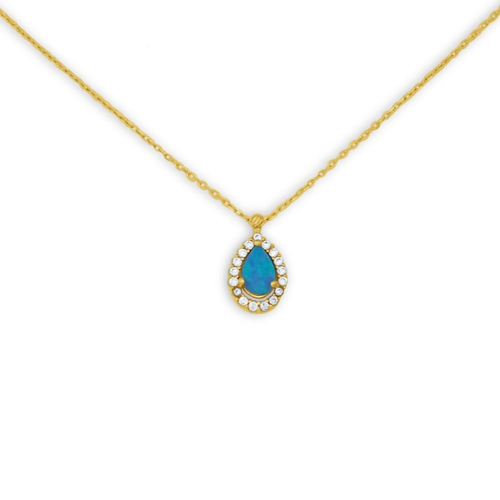 Náhrdelník zo 14 kt zlata s opálovo tyrkysovým krištáľovým príveskom v tvare kvapky