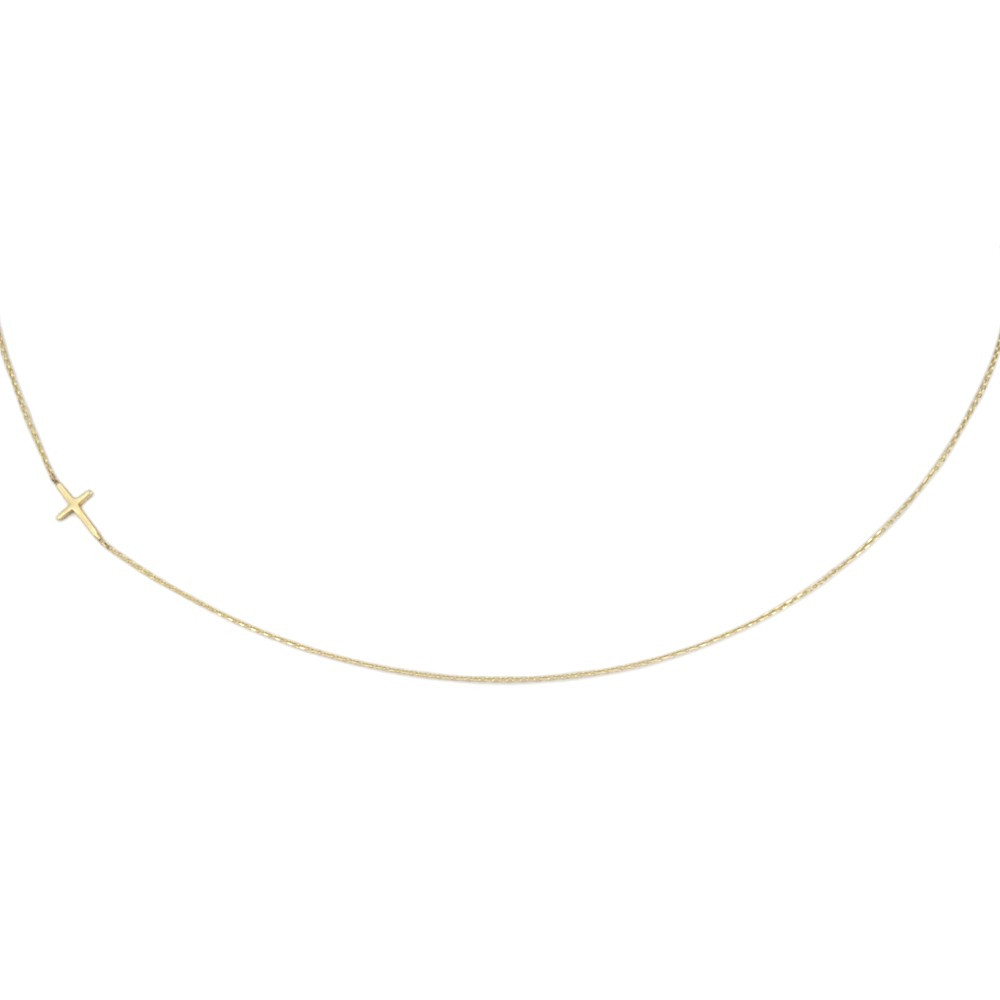 Náhrdelník zo 14 karátového zlata s integrovaným, ofsetovým krížikom.