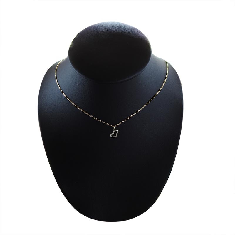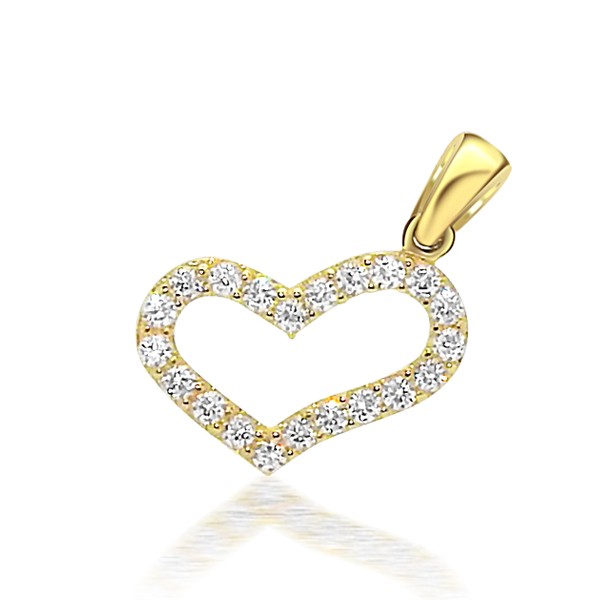 Malý prívesok v tvare srdca vyrobený zo 14 karátového zlata, posiaty kryštálmi v kruhu.