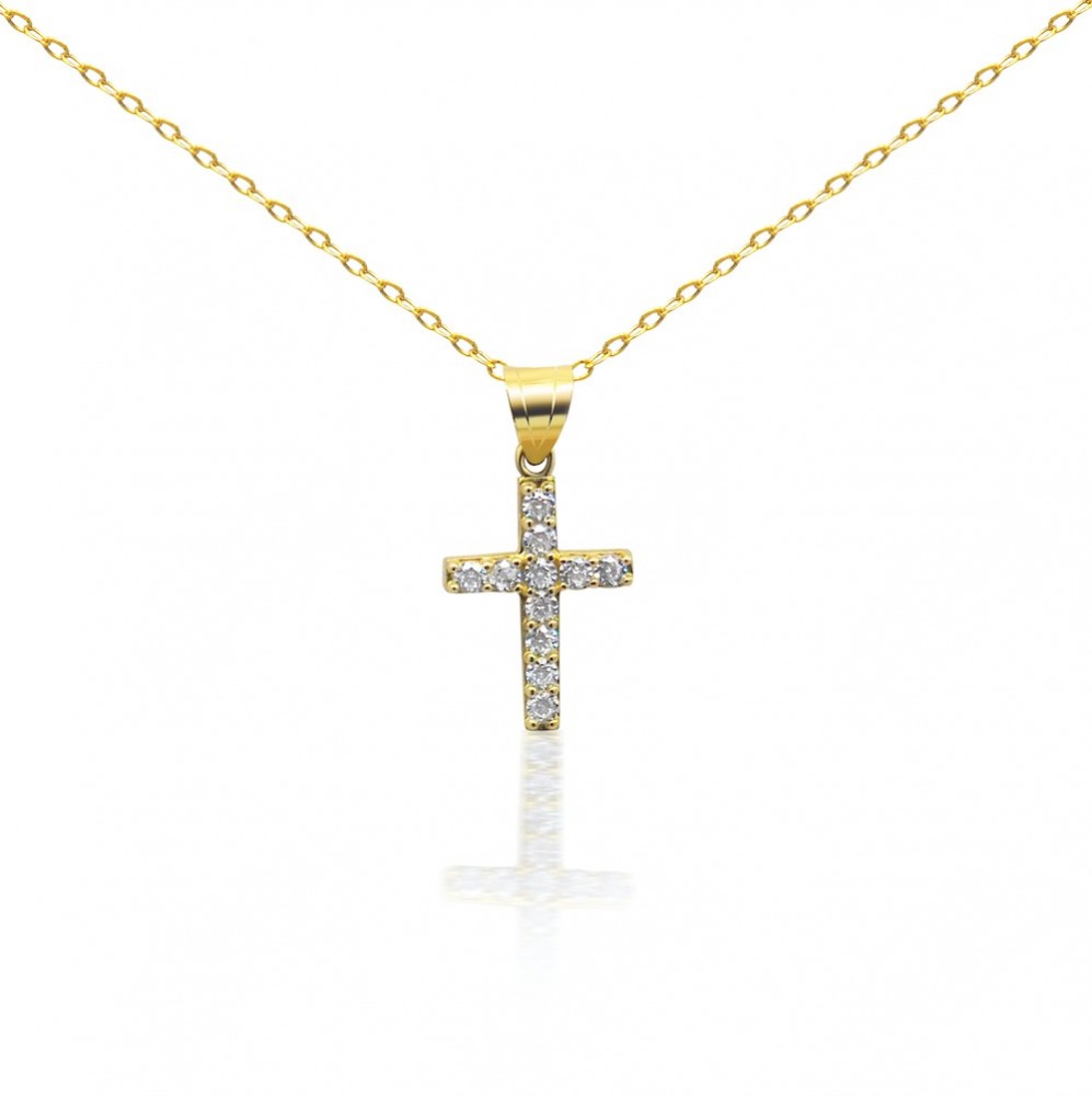 Prívesok zo 14 karátového zlata zdobený kryštálmi.