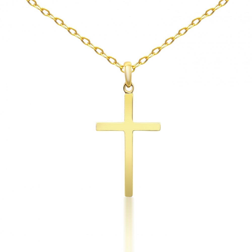 Jednoduchý veľký prívesok kríž vyrobený zo 14 karátového zlata.