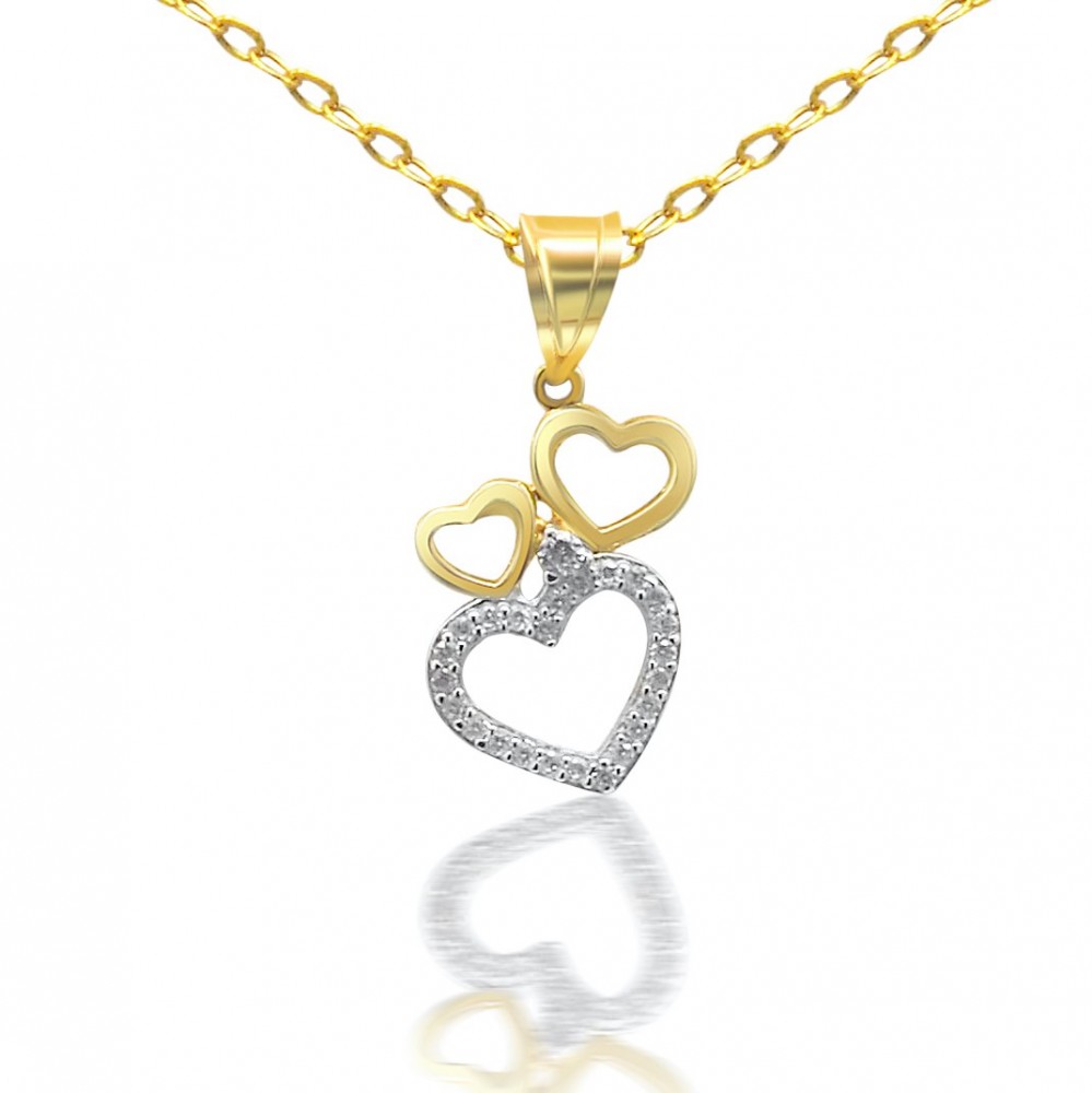 Prívesok s vyobrazením 3 srdiečok vyrobený zo 14 karátového zlata.