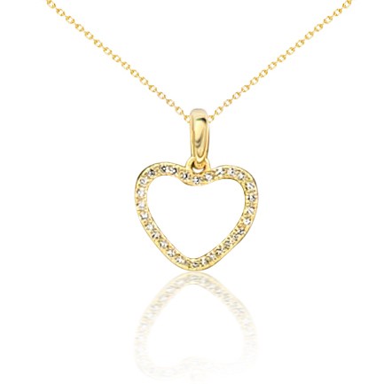 Prívesok v tvare srdca zo 14 karátového zlata zdobený kryštálmi v kruhu.