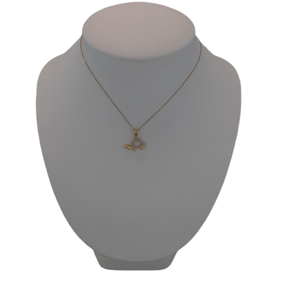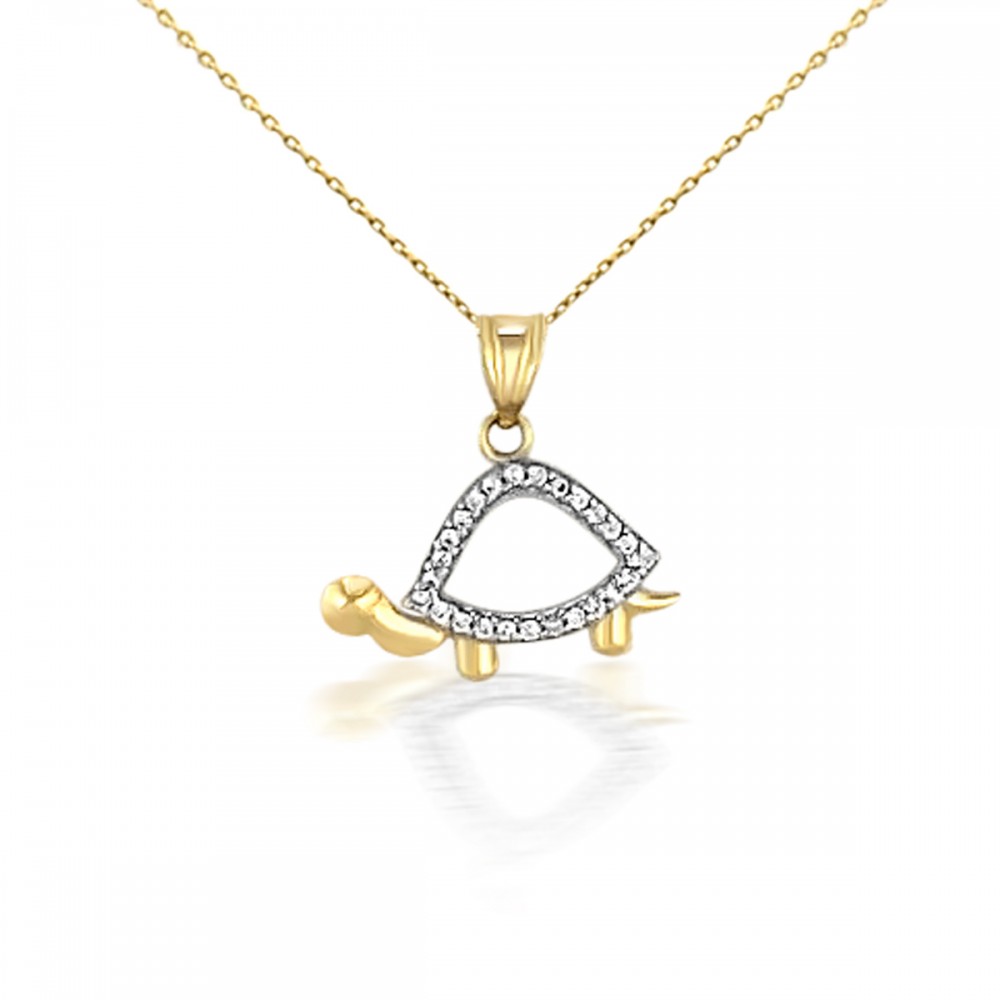 Prívesok korytnačka zo 14 karátového zlata zdobený kryštálmi.