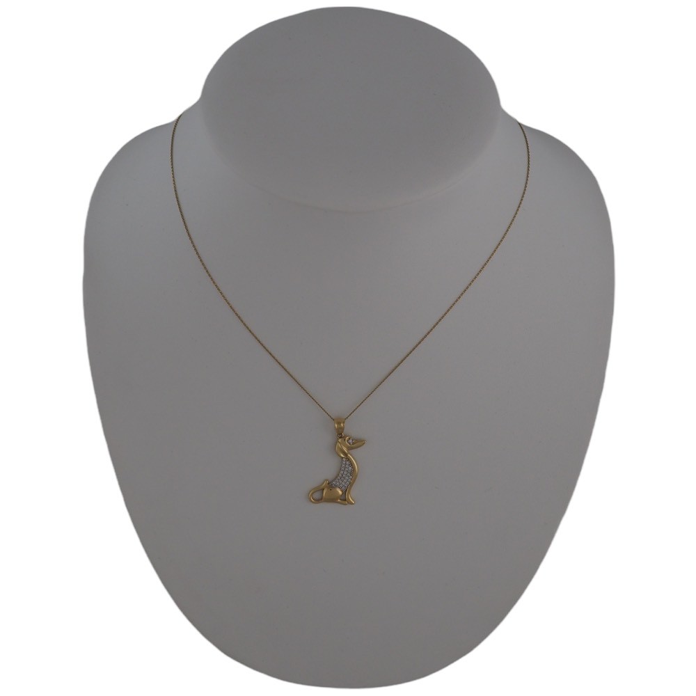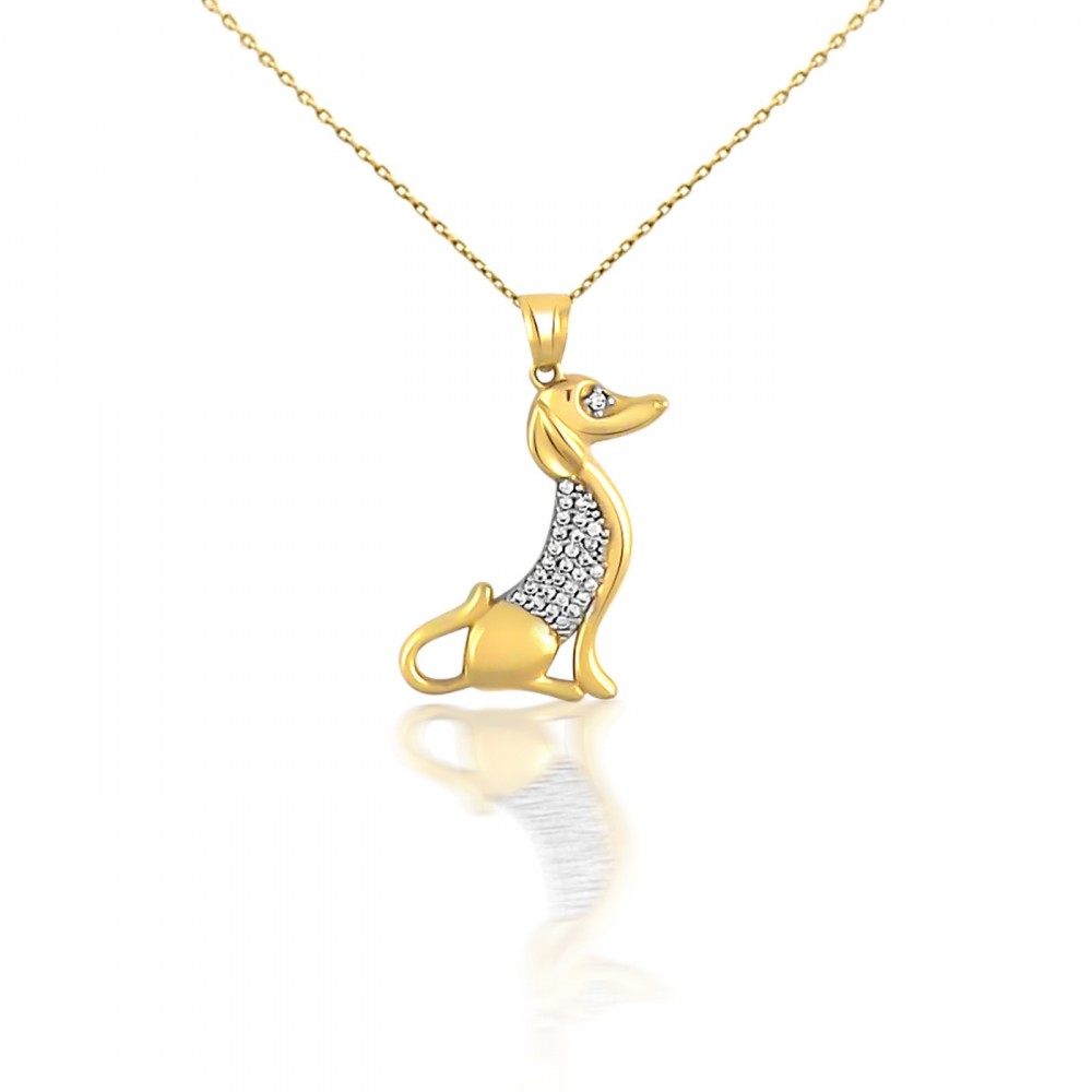 Prívesok s vyobrazením sediaceho jazvečíka vyrobený zo 14 karátového zlata, zdobený kryštálmi
