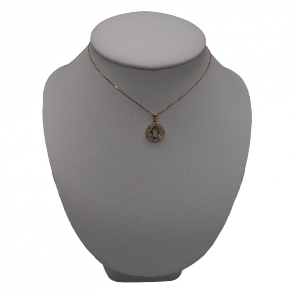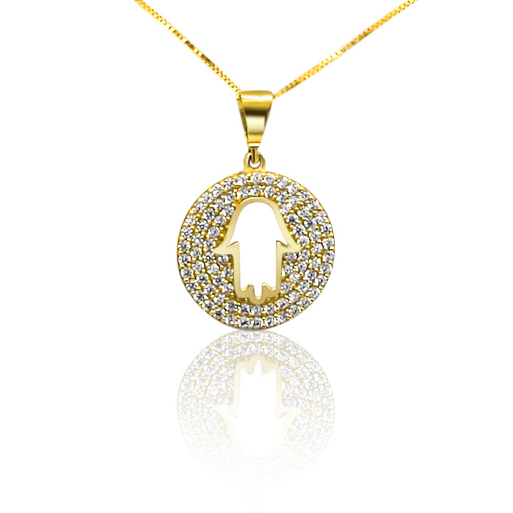 Prívesok zo 14 karátového zlata zobrazujúci ruku Fatimy zdobený kryštálmi