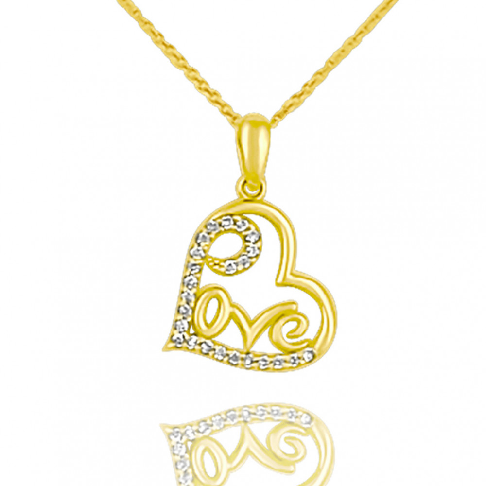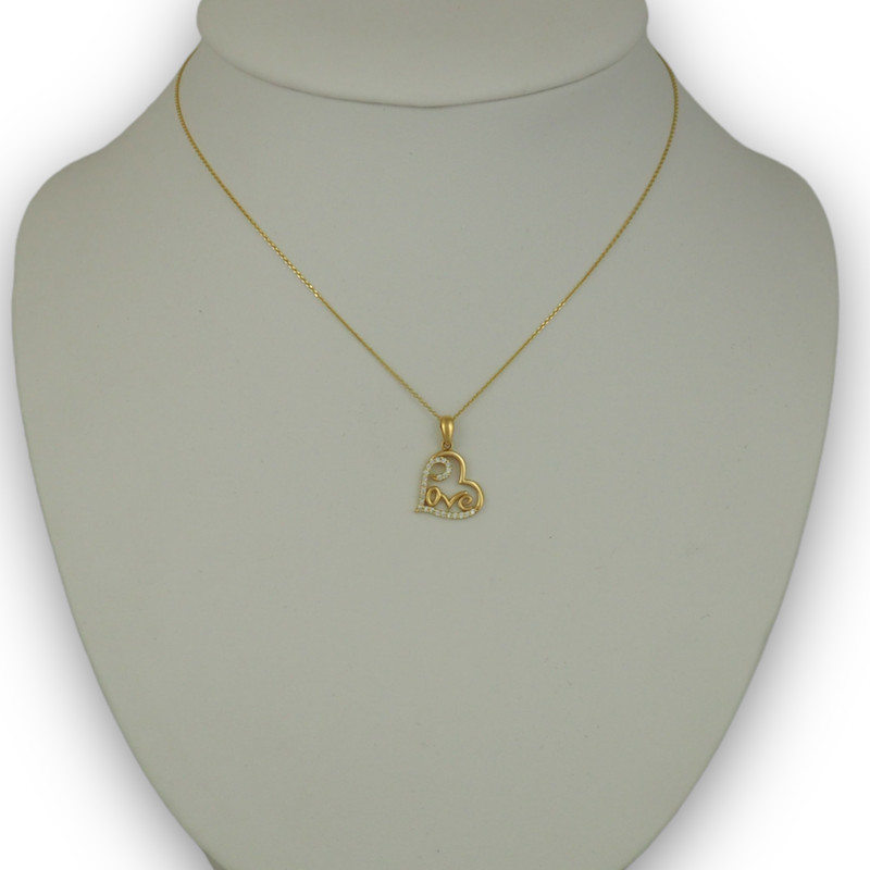 Prívesok v tvare srdca zo 14 karátového zlata s nápisom LOVE.