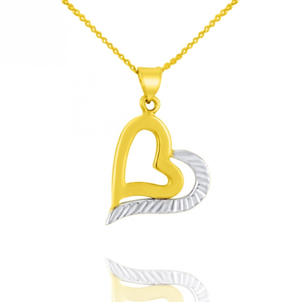 Dvojfarebný prívesok srdce v srdci zo 14 karátového zlata.