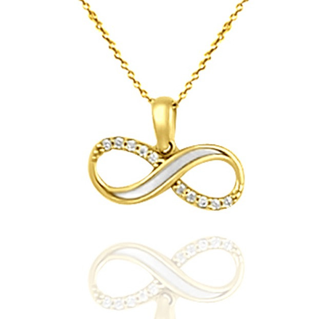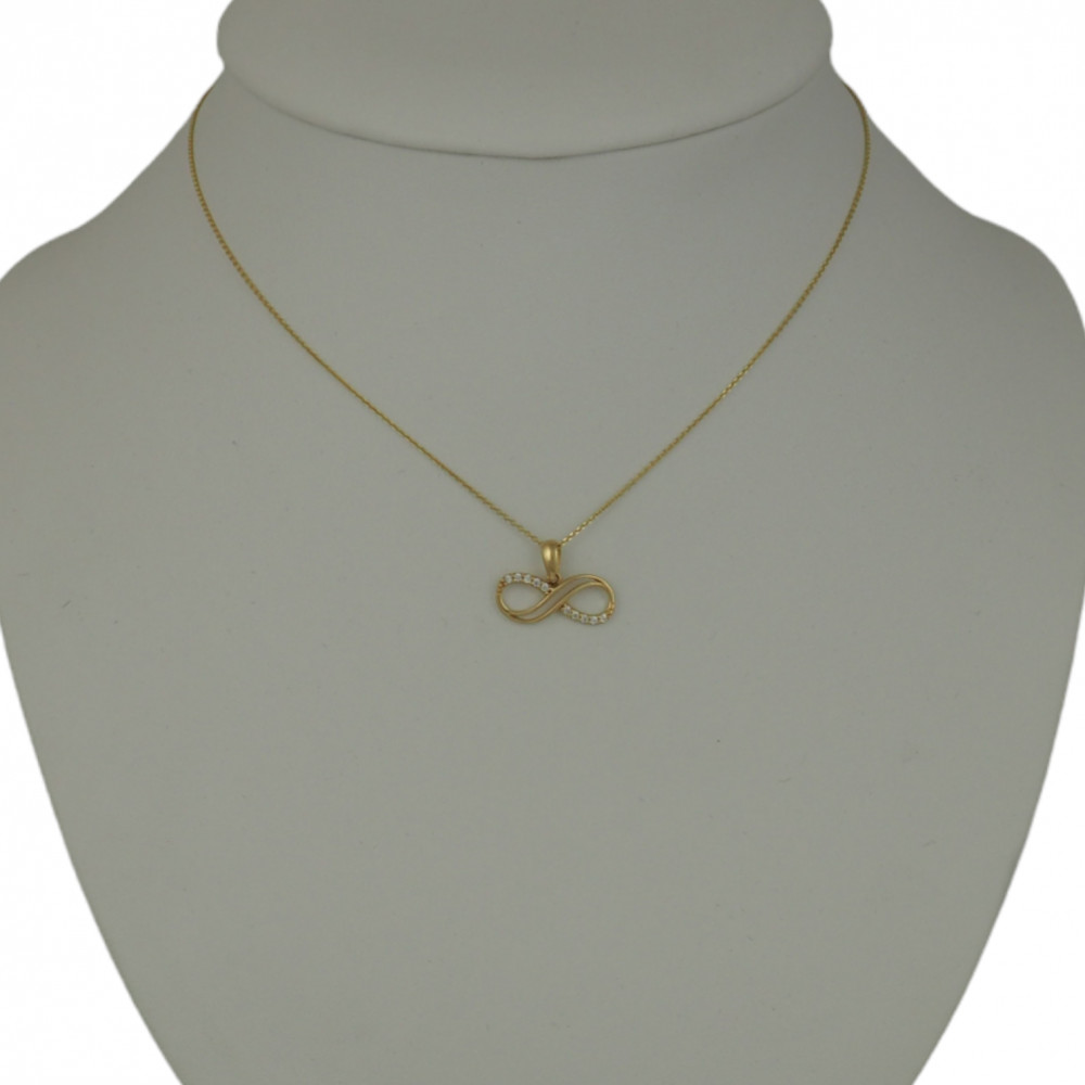 Prívesok Infinity vyrobený zo 14 karátového zlata, zdobený kryštálmi.