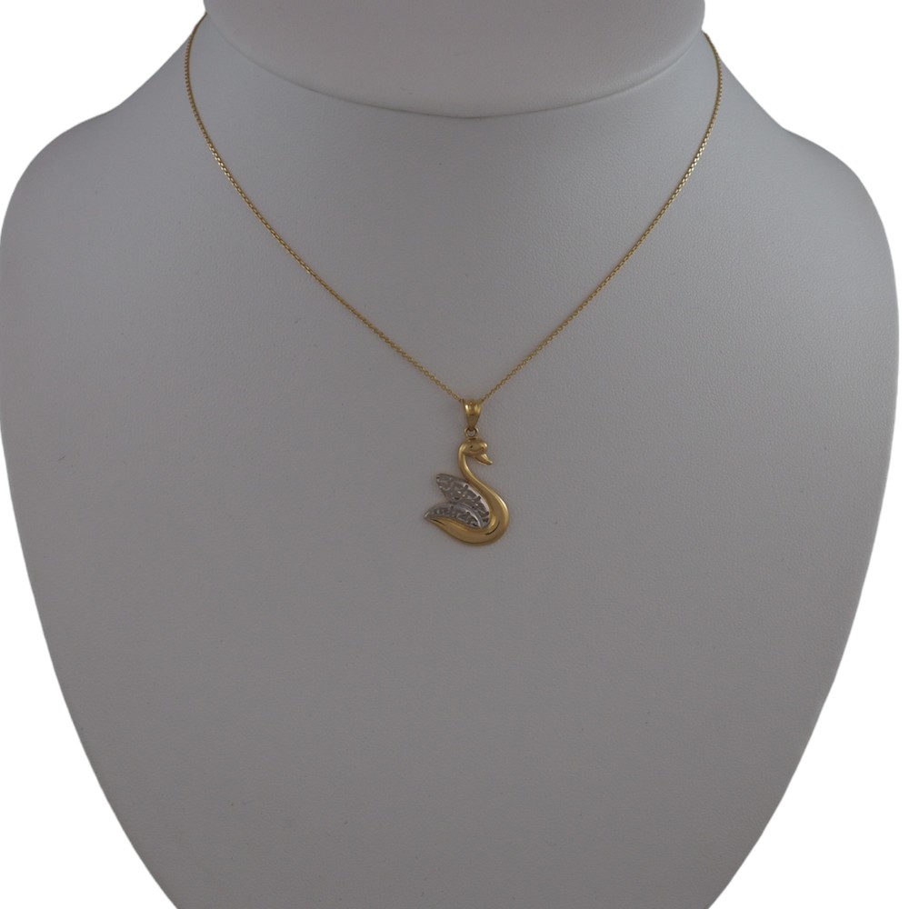 Dvojfarebný prívesok labuť vyrobený zo 14 karátového zlata.