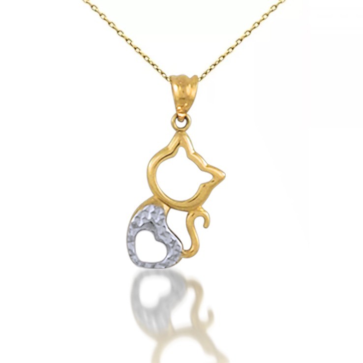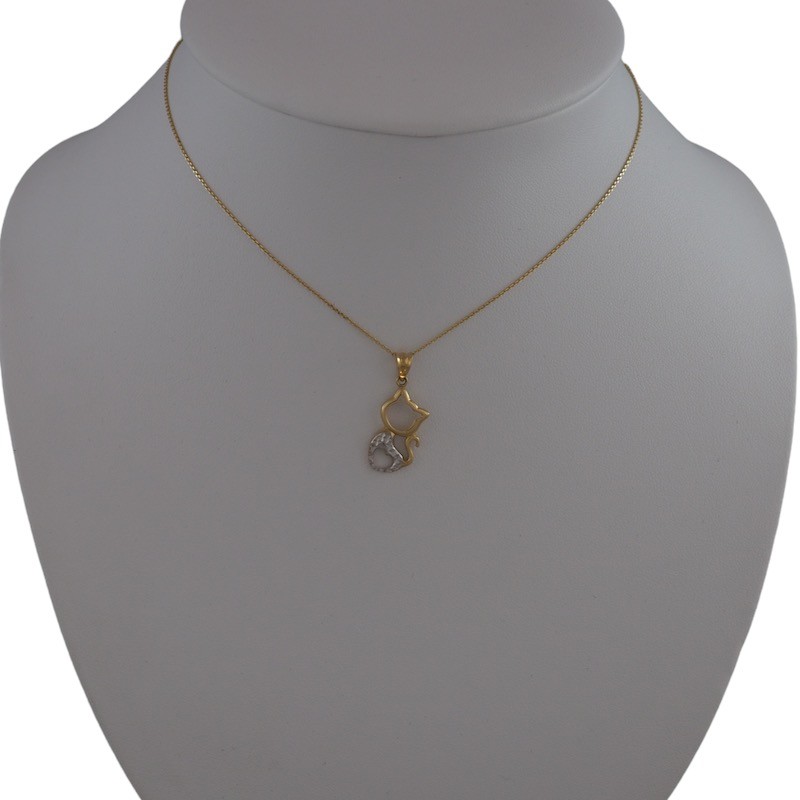 Prívesok zobrazujúci mačku zo 14 karátového zlata s vkusnou kombináciou zlata a bieleho zlata.