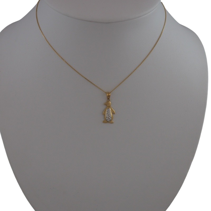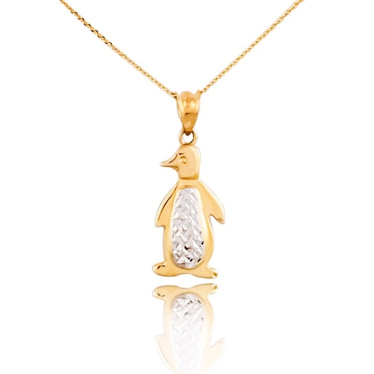 Dvojfarebný prívesok s vyobrazením tučniaka vyrobený zo 14 karátového zlata.