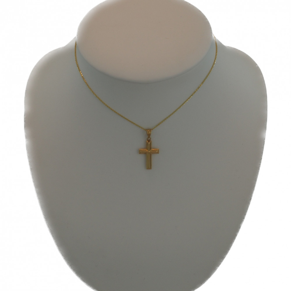 Prívesok s jednoduchým dizajnom s vyobrazením kríža zo 14 karátového zlata.