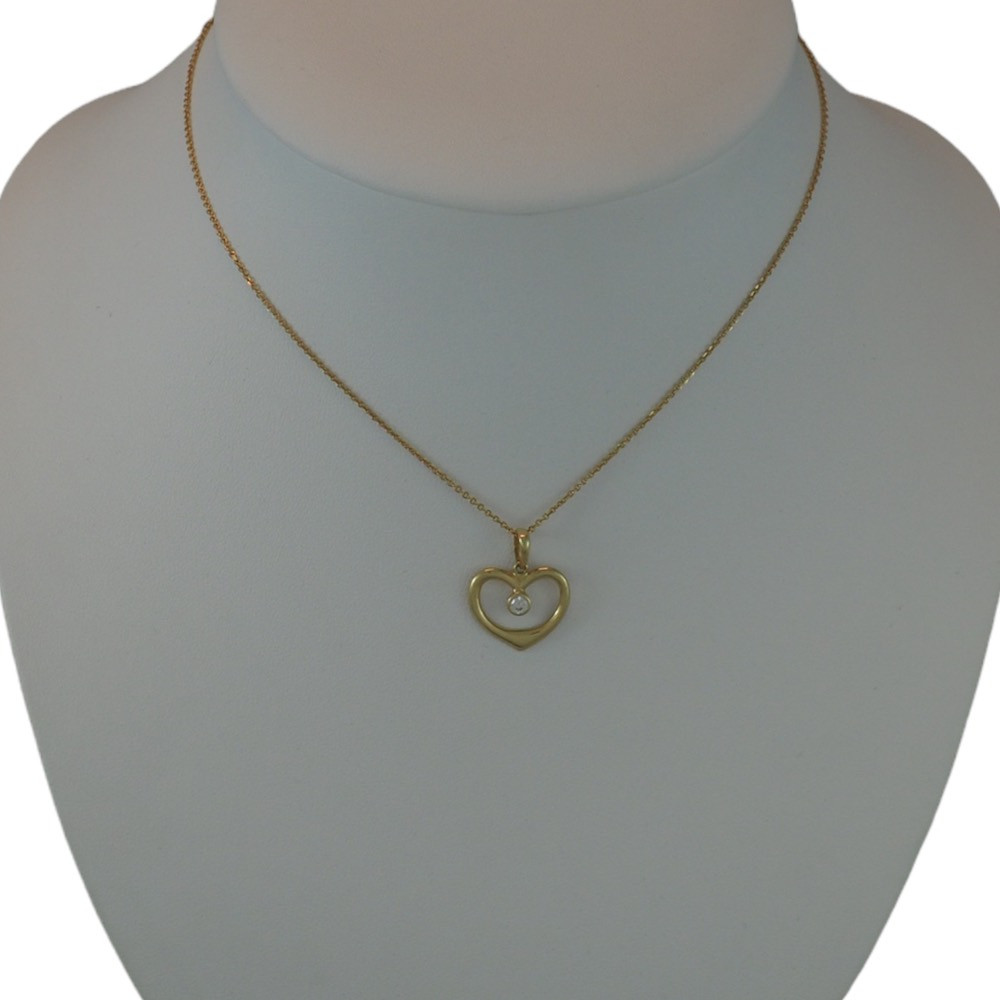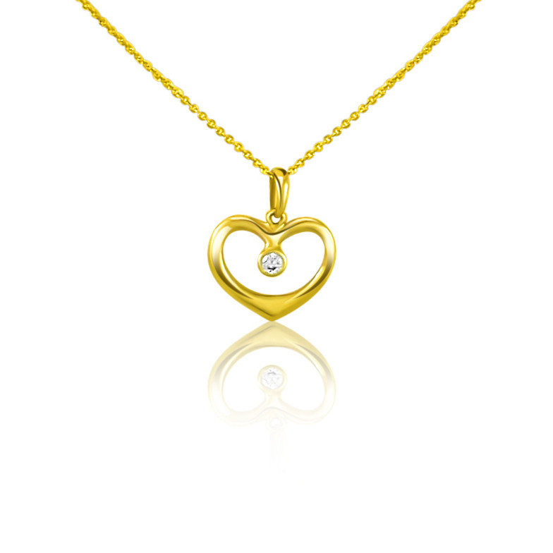 Prívesok srdce zo 14 karátového zlata s kryštálom v strede.