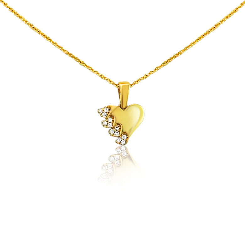 Prívesok s vyobrazením srdca zo 14 karátového zlata, z jednej strany zdobený kryštálmi.