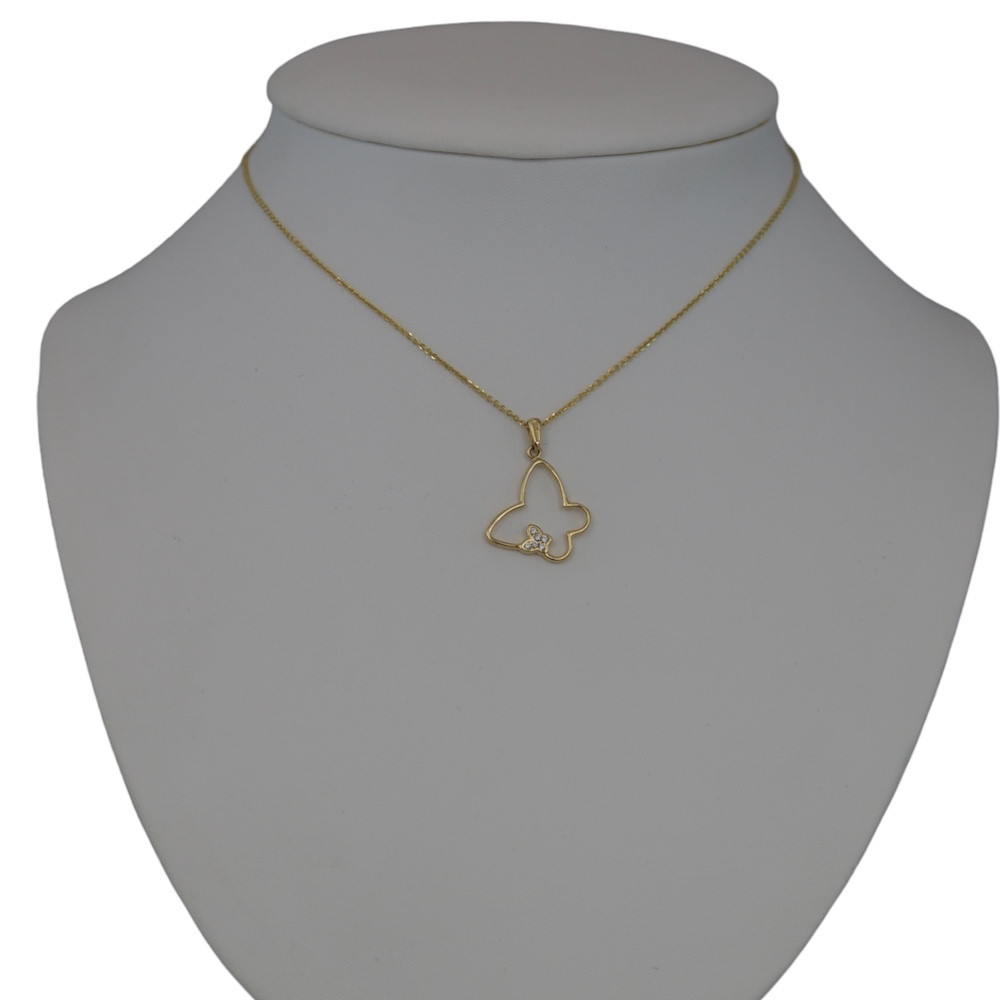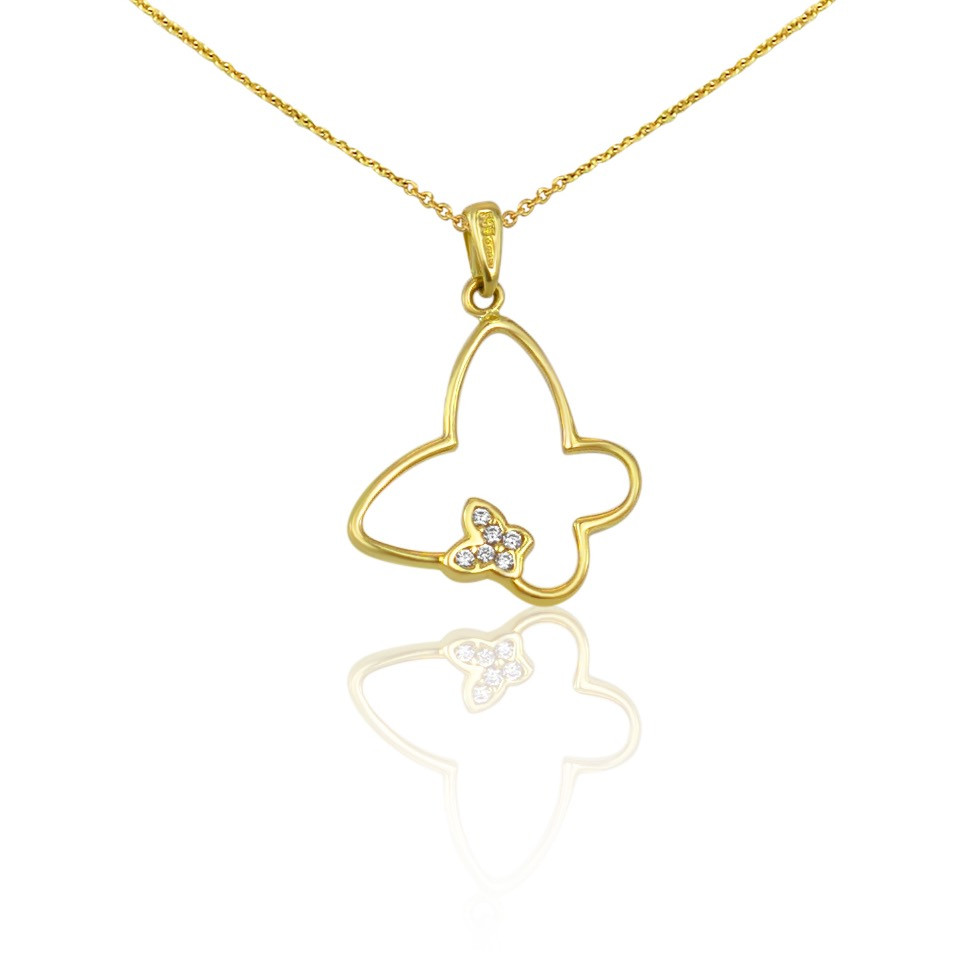 Prívesok motýľa zo 14 karátového zlata, zdobený kryštálmi.
