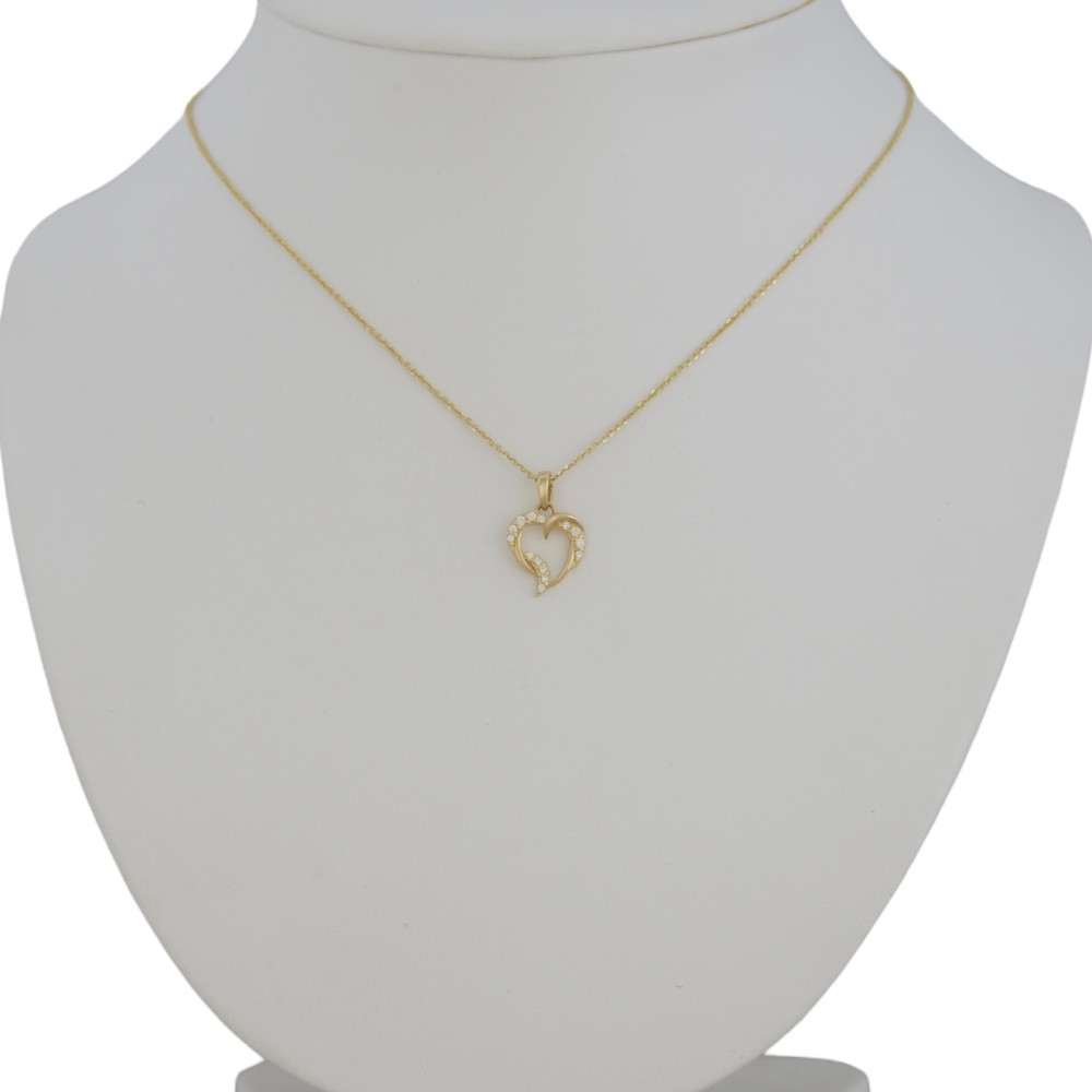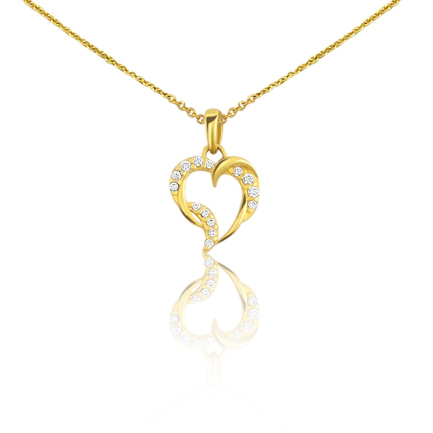 Tento krásny prívesok zo 14 karátového zlata má pôsobivé vyobrazenie srdca s krútenými líniami, ktoré je navyše zdobené kryštálmi.
