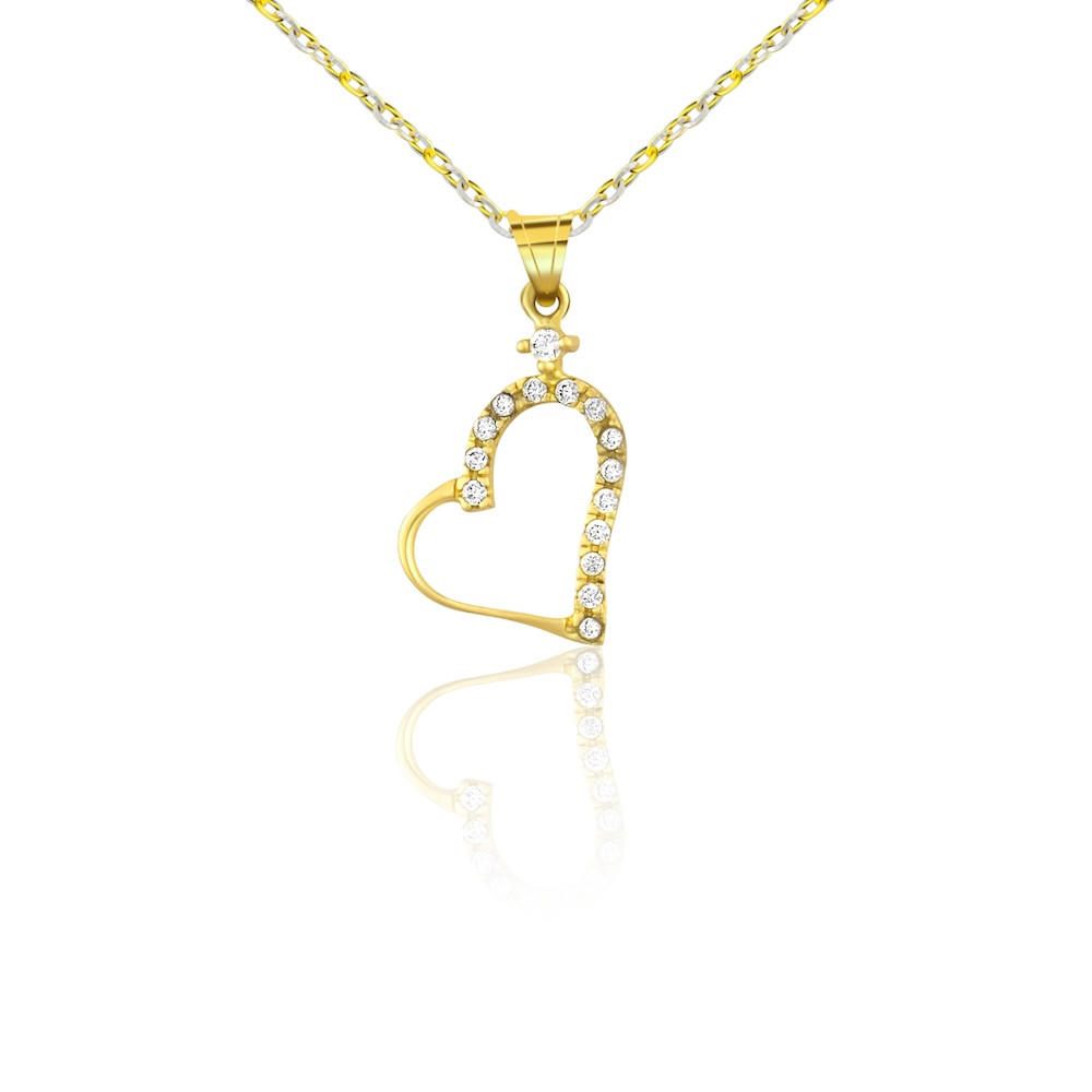 Prívesok srdce zo 14 karátového zlata zdobený kryštálmi.