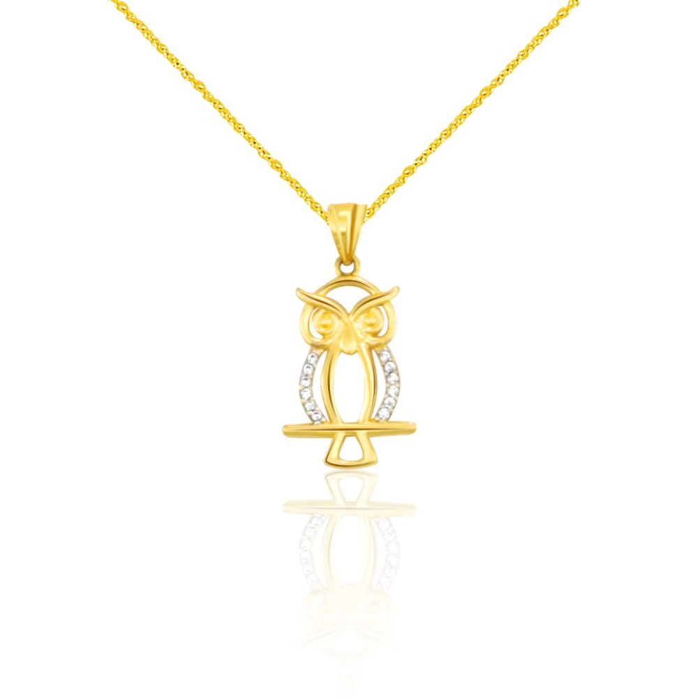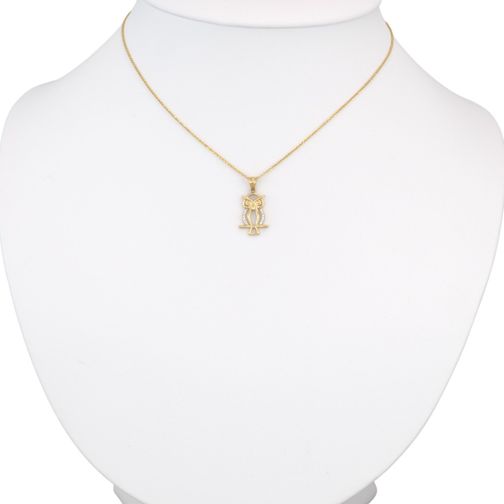 Trblietavý prívesok zobrazujúci begolyta zo 14 karátového zlata zdobený kryštálmi.