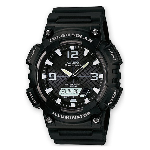 Pánske solárne hodinky s plastovým remienkom, vodotesnosť 10 ATM.