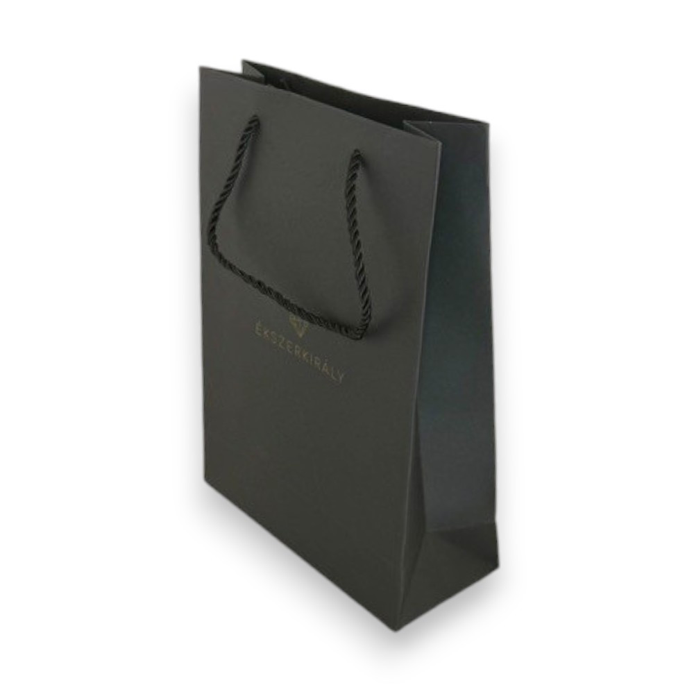 tílusos, fekete ajándéktáska arany Ékszerkirály logóval, mely méltó kiegészítője bármely ékszerajándéknak.