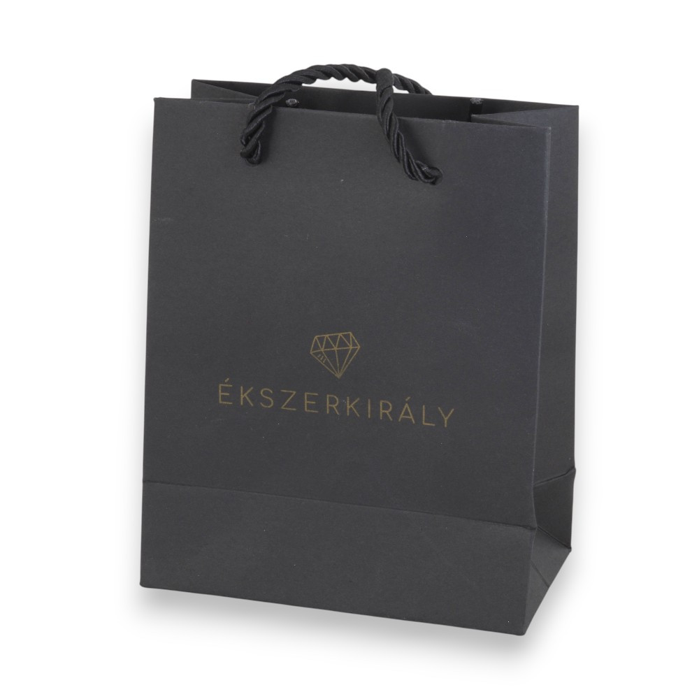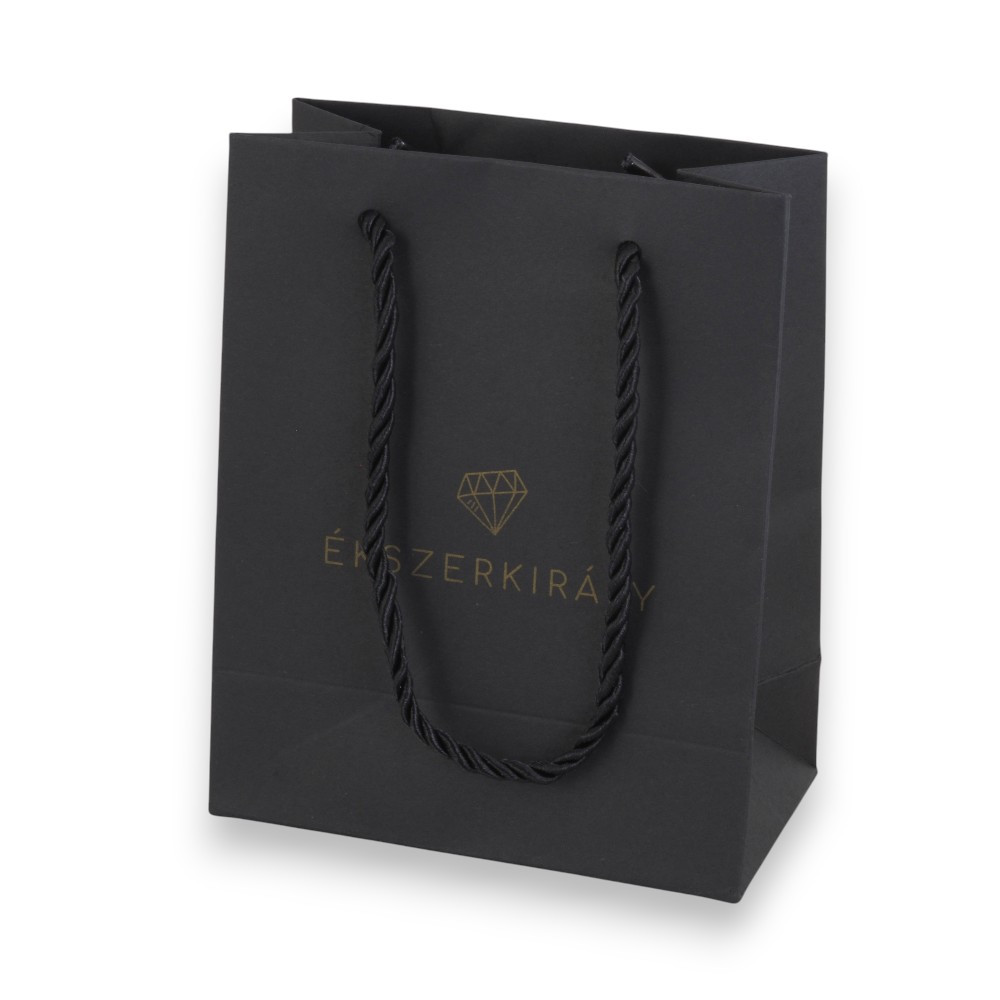Stílusos, fekete ajándéktáska arany Ékszerkirály logóval, mely méltó kiegészítője bármely ékszerajándéknak.