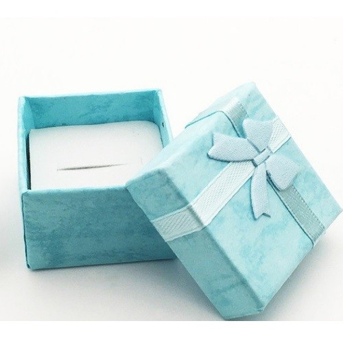 Farebná papierová darčeková krabička s mašličkou na prstene a náušnice.