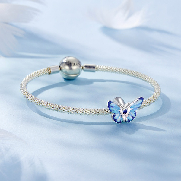 Engedd, hogy a természet varázsa belopja magát a mindennapjaidba ezzel a lenyűgöző ezüstcharmmal, amelynek főszereplője egy káprázatos kék pillangó. A 925 sterling ezüstből készült ékszer cirkóniumkristályokkal díszítve ragyog, miközben a színes zománcozás élettel tölti meg a pillangó szárnyait. Kompakt méretének (1.1 × 1.6 cm) és könnyed súlyának (2.3 g) köszönhetően tökéletesen illik bármilyen karkötőhöz, így egyszerűen hozzáadhatod ékszerkollekciódhoz. Ez a charm nemcsak saját stílusod kifejezésére ideális, hanem remek ajándék is szeretteid számára, hogy mindig emlékezzenek a különleges pillanatokra.