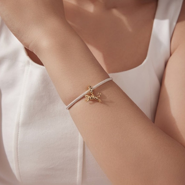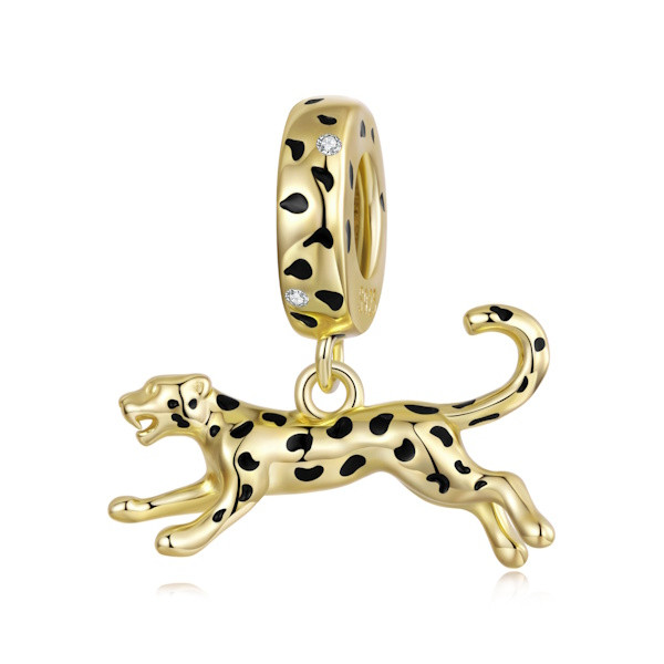 Dobj egy kis vadságot ékszerkollekciódba ezzel a lenyűgöző leopárd motívumos ezüst charm-mal! A 925-ös sterling ezüstből készült, aranybevonattal díszített és csillogó cirkóniumkristályokkal kirakott ékszer igazán különleges kiegészítője lehet karkötődnek vagy nyakláncodnak. A leopárd, mint motívum, a bátorság és az erő szimbóluma, ami évszázadok óta lenyűgözi az embereket. Tökéletes választás azoknak, akik szeretik a kihívásokat és nem félnek megmutatni valódi énjüket.