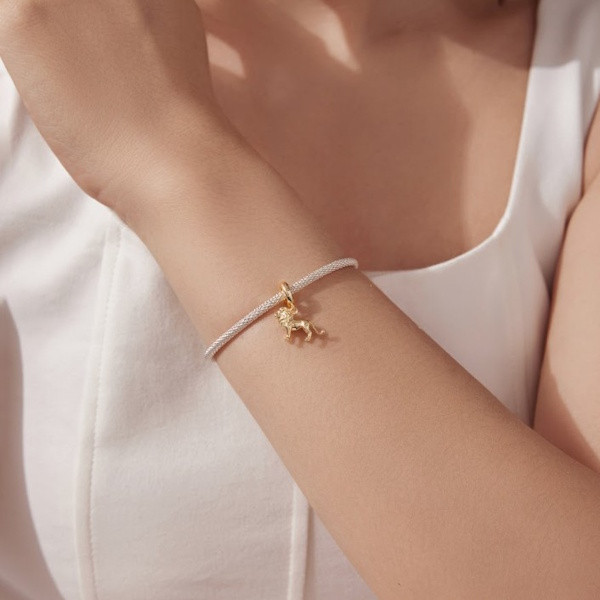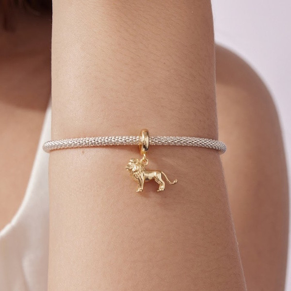 Az oroszlán erejét és bátorságát megtestesítő ezüst charm tökéletes kiegészítője lehet karkötődnek vagy nyakláncodnak. A 925 sterling ezüstből készült, finom aranybevonattal ellátott medál elegáns és időtálló választás. Az oroszlán motívum az ókori kultúrákban az erőt és a méltóságot szimbolizálta, így viselőjének önbizalmat és határozottságot kölcsönözhet.