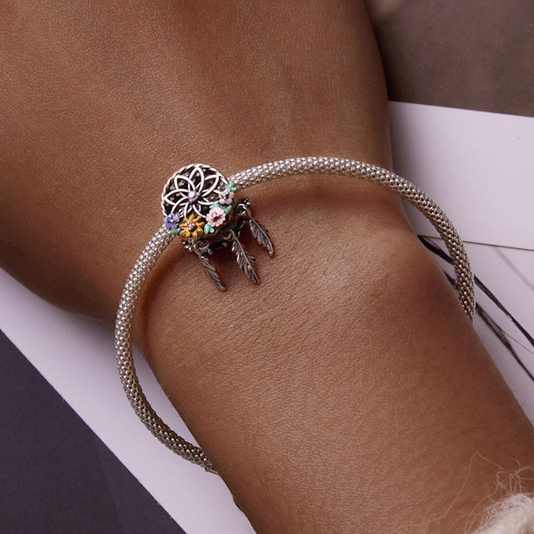 Hozz egy kis varázslatot a mindennapjaidba ezzel a lenyűgöző álomfogó charm-mal! A 925 sterling ezüstből készült ékszer finom zománcozással és csillogó cirkónium kristályokkal teszi elegánssá megjelenésed. A 2.3 x 1.3 cm-es méret tökéletes arra, hogy diszkréten, mégis feltűnően díszítse karkötődet vagy nyakláncodat. A charm finom részletei az indián kultúra titokzatos világát idézik, így nemcsak stílusos, de különleges jelentéssel is bír. Kiváló ajándék lehet barátaidnak vagy szeretteidnek, akik értékelik az egyedi és jelentéssel bíró ékszereket. Lepd meg magad vagy egy kedvesed ezzel a különleges darabbal!