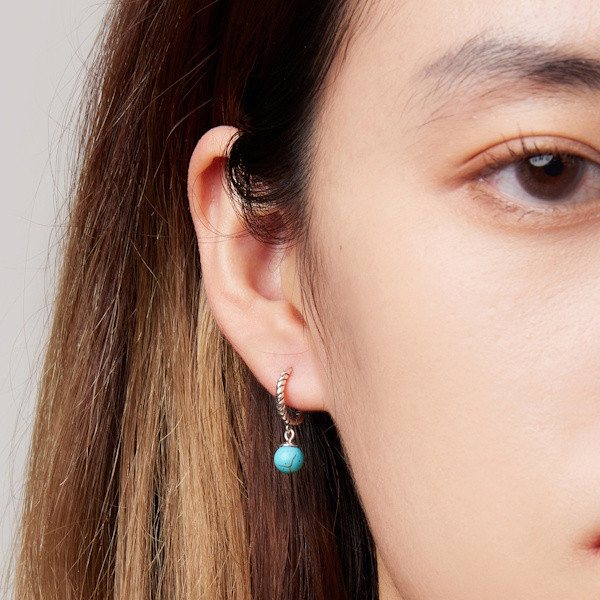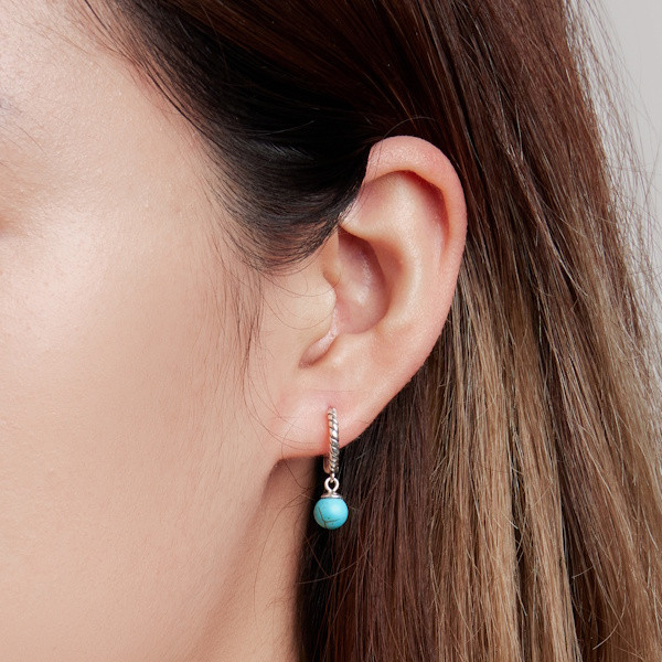 Ezüst karikafülbevaló türkizkristállyal