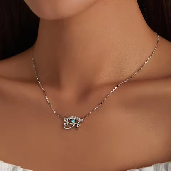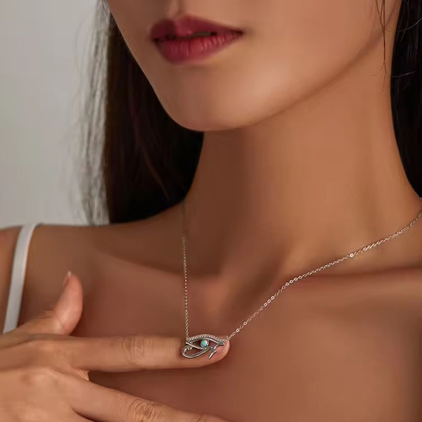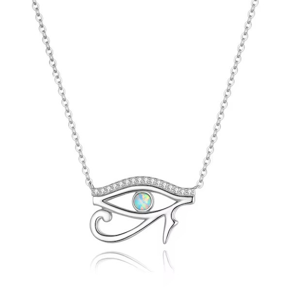 Varázslatos ékszerre vágysz, ami nemcsak gyönyörű, hanem különleges jelentéssel is bír? Az ezüst nyaklánc Hórusz szeme medállal tökéletes választás! A 925 sterling ezüstből készült lánc platinabevonattal és ragyogó cirkóniumkristállyal díszített, így igazán elegáns megjelenést kölcsönöz viselőjének. A medálon látható Hórusz szeme az ókori Egyiptomból származik, és az isteni védelem, a bölcsesség szimbóluma.
