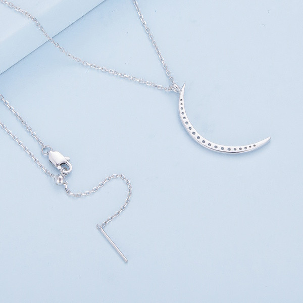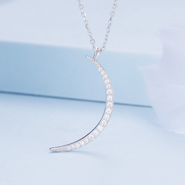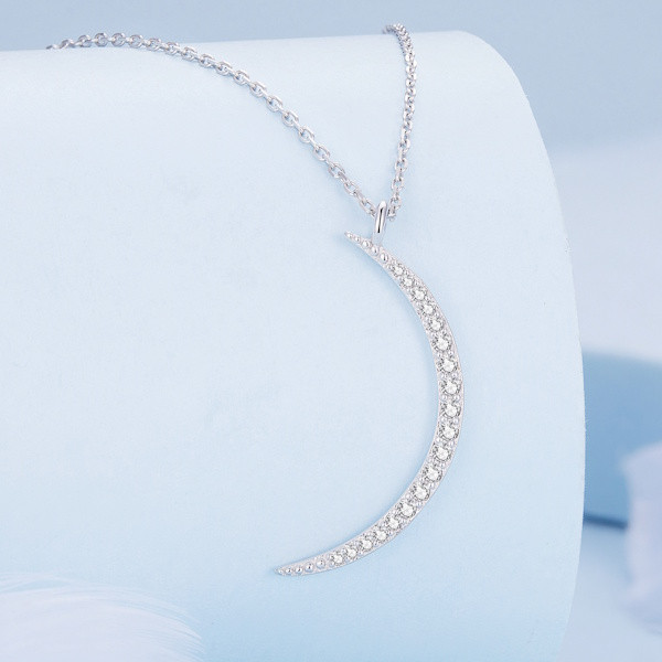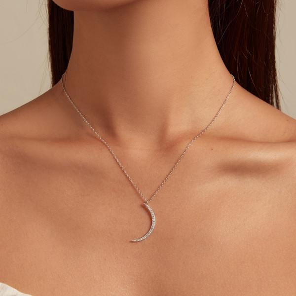 Ez a lenyűgöző, 925 sterling ezüstből készült nyaklánc a hold varázslatos világát hozza el neked. A 42 cm hosszú lánc kecsesen simul a nyakadra, míg a 3.0×1.2 cm-es holdmedál finoman csillog a platinabevonatnak és a ragyogó cirkóniumkristályoknak köszönhetően. A hold ősidők óta a változás és az átalakulás szimbóluma, emlékeztetve minket az élet folyamatos körforgására. Viseld ezt az ékszert, hogy mindig emlékezz arra, hogy minden új nap egy új kezdetet hozhat. Ideális ajándék lehet szeretteid számára, hiszen a hold varázsa mindenkinek szól, aki nyitott a világ csodáira. A nyaklánc elegáns és időtlen, bármely öltözék tökéletes kiegészítője, és garantáltan elbűvöli viselőjét. Engedd, hogy a holdfény ragyogása elkísérjen mindennapjaid során!