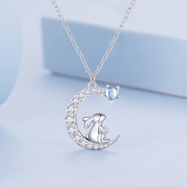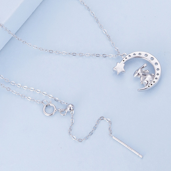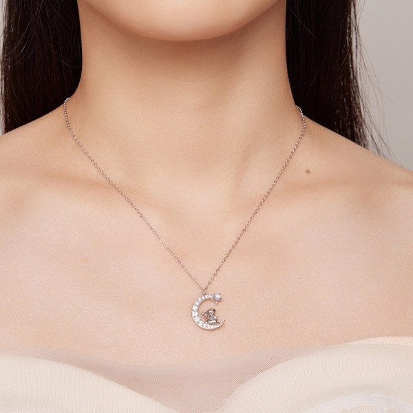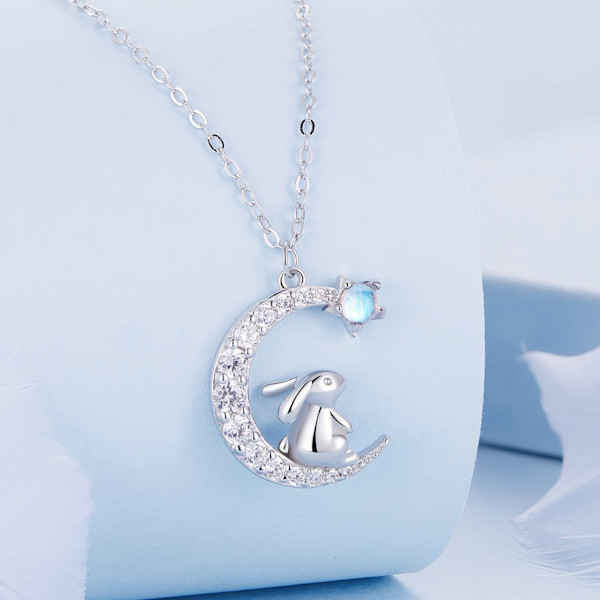 Ez a lenyűgöző, 925-ös sterling ezüstből készült női nyaklánc igazán különleges darabja lehet ékszergyűjteményednek. A finom platinabevonat nemcsak a tartósságot, hanem az elegáns megjelenést is garantálja. A medálon egy bájos nyuszi található, amely a szerencse és az új kezdetek szimbóluma, így különösen kedvelt motívum a tavasz beköszöntével. A nyuszi alakját csillogó cirkóniumkristályok és misztikus holdkő díszíti, amelyek a nőiességet és a belső békét szimbolizálják. A 44 cm hosszú lánc könnyedén illeszkedik bármilyen nyakmérethez, és a mindössze 2.9 grammos súlyának köszönhetően kényelmes viseletet biztosít egész nap. Tökéletes választás lehet születésnapi vagy évfordulós ajándékként is, hiszen ki ne örülne egy ilyen kifinomult és jelentéssel teli ékszernek? Viseld önmagában vagy más ékszerekkel kombinálva, hogy igazán egyedi megjelenést érj el!
