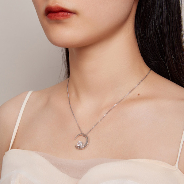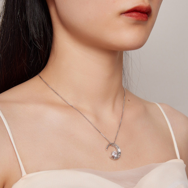 Ez az elegáns ezüst női nyaklánc a holdmedállal tökéletes választás mindennapi viseletre és különleges alkalmakra egyaránt. Kiváló minőségű 925 sterling ezüstből készült, és platinabevonattal van ellátva, ami még tartósabbá és ragyogóbbá teszi. A medál közepén csillogó cirkóniumkristály található, amely finom eleganciát kölcsönöz a nyakláncnak. A hold szimbóluma az éjszaka titokzatosságát és az álmok megvalósítását jelképezi, így ez a nyaklánc nemcsak divatos kiegészítő, hanem egyedi jelentéssel is bírhat számodra. A 40 + 5 cm hosszúságú lánc könnyedén állítható, így kényelmesen illeszkedik minden nyakra. Mindössze 4 grammos súlyával szinte észrevétlen, mégis lenyűgöző hatást kelt. Tökéletes ajándék lehet szeretteid számára, ami biztosan mosolyt csal az arcukra.