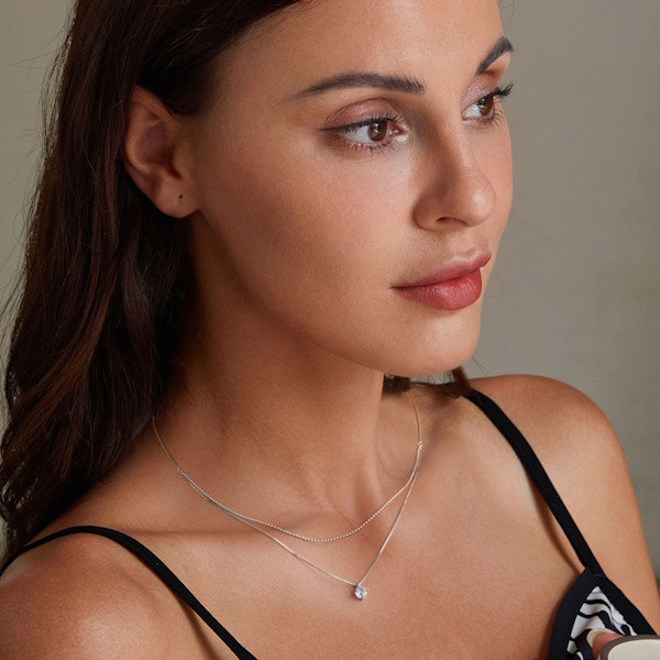 Ez az elegáns ezüst női nyaklánc tökéletes választás azoknak, akik szeretik a finom, mégis feltűnő ékszereket. A 925 sterling ezüstből készült tripla lánc egy gyönyörű virágmedállal van díszítve, amely cirkóniumkristályokkal van kirakva, hogy ragyogóvá tegye a megjelenésed. A platina bevonat extra védelmet nyújt, miközben a nyaklánc fényét is megőrzi hosszú időn át. A virágmotívum a természet szépségét és az élet megújulását szimbolizálja, így tökéletes ajándék lehet szeretteid számára, akik értékelik a mélyebb jelentéseket. Az 40 + 5 cm hosszúságú és mindössze 3.4 g súlyú nyaklánc kényelmes viseletet biztosít, akár mindennapokra, akár különleges alkalmakra. Ha egy igazán különleges és személyes ajándékot keresel, ez az ezüst nyaklánc biztosan elnyeri a tetszésedet és örömet okoz annak, akinek ajándékozod.