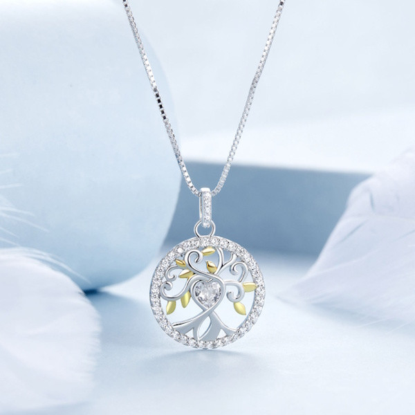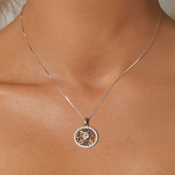 Ez a gyönyörű, 925-ös sterling ezüstből készült nyaklánc az elegancia és a stílus tökéletes kombinációja. Az arany- és platinabevonat még különlegesebbé teszi, míg a csillogó cirkóniumkristályok finoman szikráznak minden mozdulatnál. Az életfa medál nem csupán dekoratív elem, hanem mély szimbolikával is bír: az életfa az erőt, a növekedést és az összekapcsolódást jelképezi, így viselőjét emlékezteti a személyes fejlődés és a családi kötelékek fontosságára. A 40 + 5 cm hosszúságú lánc tökéletesen illeszkedik minden nyakformához, így bármilyen alkalomra ideális választás. Könnyű, mindössze 4.1 grammos súlya kényelmes viseletet biztosít. Ez a nyaklánc nemcsak saját magadnak lehet tökéletes kiegészítő, hanem ajándékként is kiváló választás, amivel kifejezheted törődésed és szereteted.